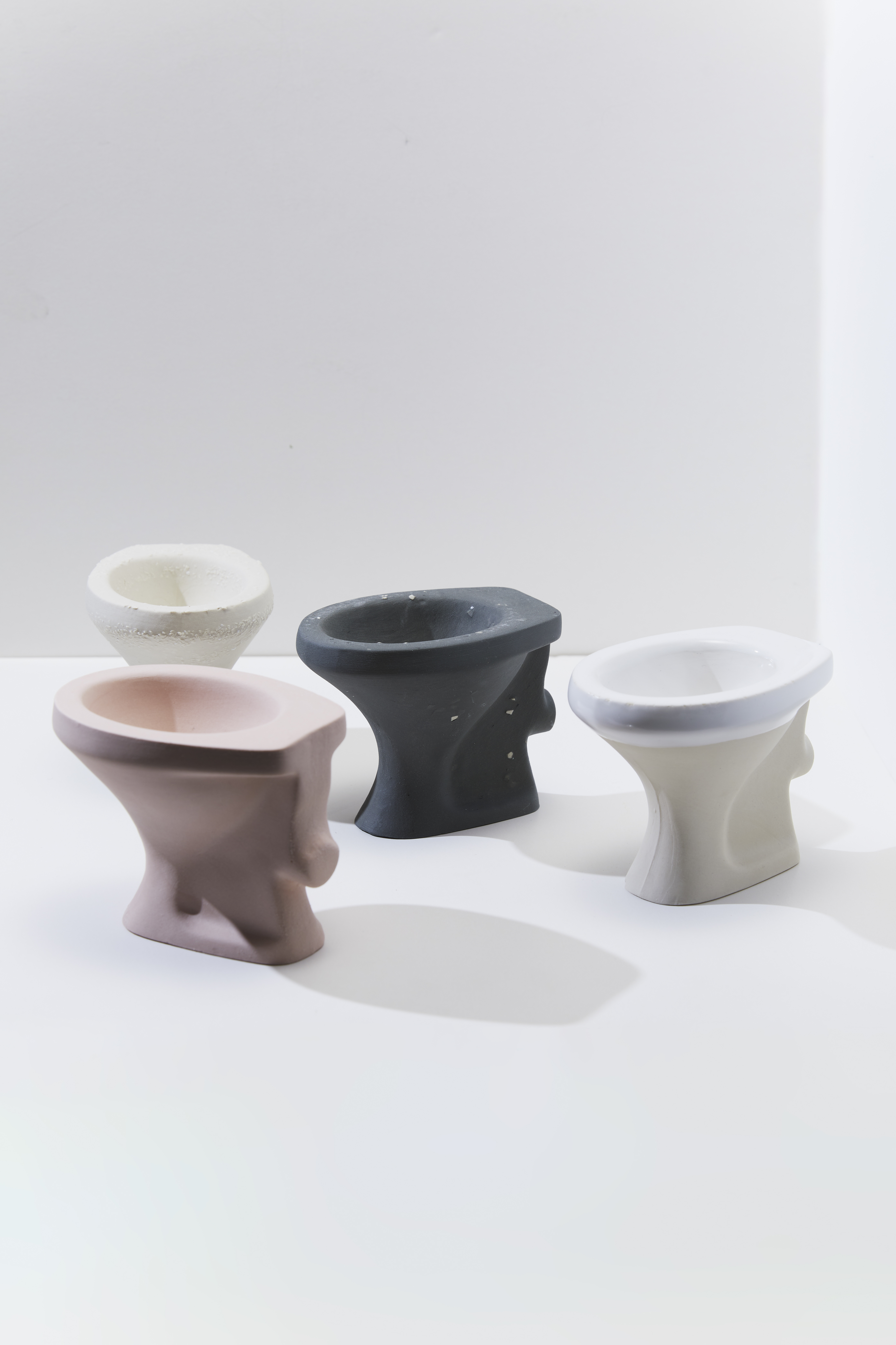 vases are designed from toilet forms, as a symbol of extending the bathroom space into other living spaces.