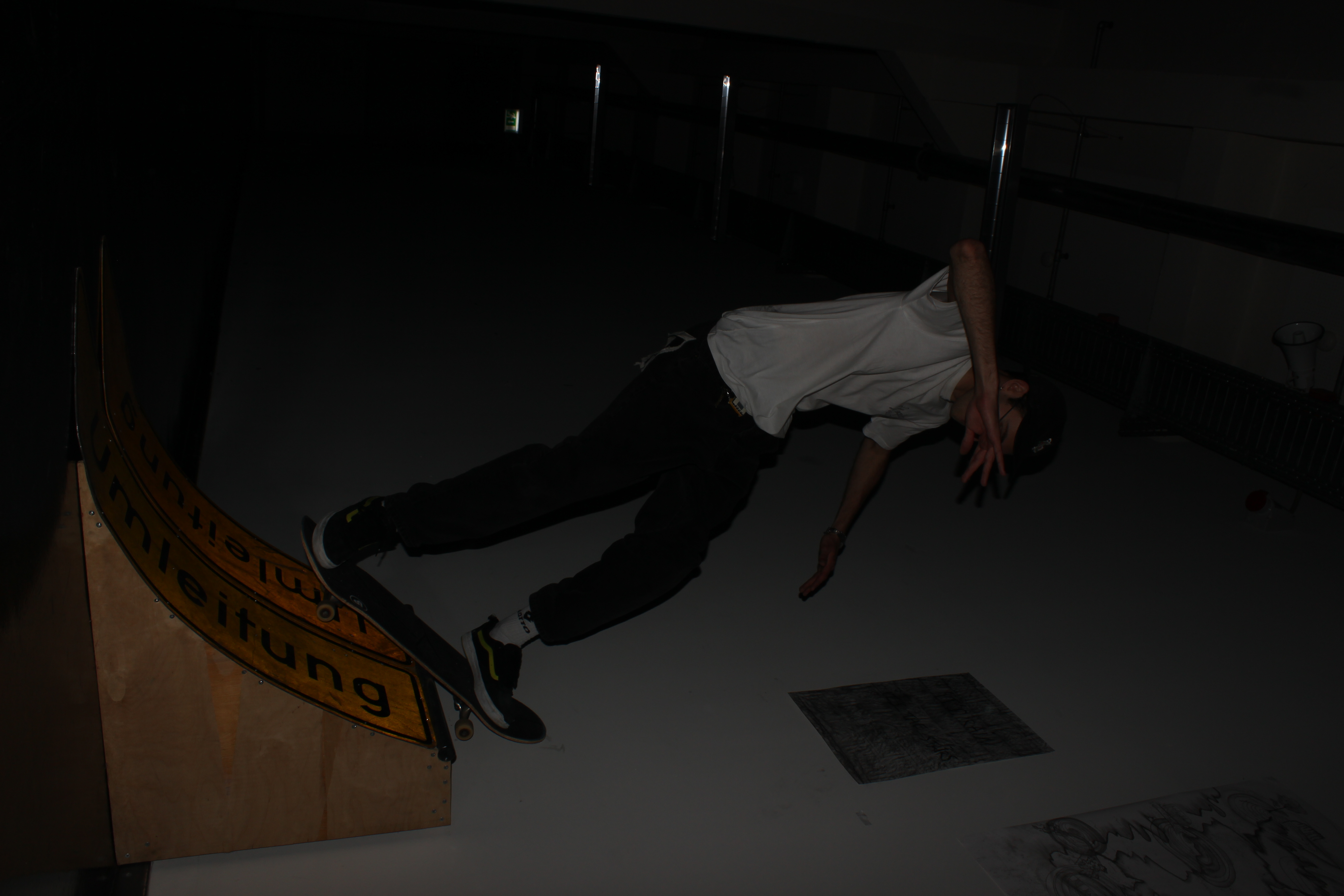 Diese Quarterpipe für die Ausstellung vom Projekt 'rethinking public space' wurde, in Kooperation mit Leonard Wille, aus Straßenschildern und Holz gebaut, die auf dem Schrottplatz und beim Sperrmüll gefunden wurden